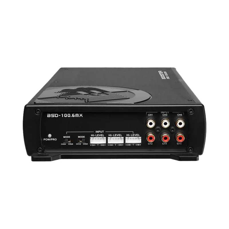 آمپلی فایر BSD-100.6MX از محصولات سال 2019 شرکت بوستر میباشد که دارای کیفیت ساخت بدنه خوب و مصرف برق بهینه ای داشته که با سیستم برقی خودرو سازگاری کامل دارد. این محصول بوستر از نوع 6 کانال میباشد که قابلیت پل زنی را برای استفاده ساب ووفر قدرتمند داشته تا لذت خیلی بیشتری از موسیقی در حال پخش در خودرو برای شنونده ایجاد کند. توان خروجی بوستر BSD-100.6MX برابر با 6000 وات میباشد که توان خروجی مداوم آن در حالت 4 اهم 4×100 وات ، در حالت 2 اهم معادل 4×170 وات و در حالت پل هم ، 2×340 وات قدرت دارد. فرکانس پاسخگویی آن نیز در بازه ی 10 الی 30000 هرتز و نسبت سیگنال به نویز 95 دسیبل میباشد. ترمینال RCA داشته و نوع ترمینال اسپیکر آن نیز از نوع بلوکی میباشد. ابعاد آن 17x5x30 سانتیمتر و وزن آن 4 کیلوگرم میباشد.